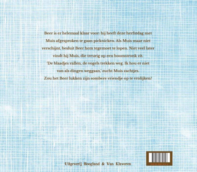 Beer is er helemaal klaar voor: hij heeft deze herfstdag met Muis afgesproken te gaan picknicken. Als Muis maar niet verschijnt, besluit Beer hem tegemoet te lopen. Niet veel later vindt hij Muis, die treurig op een boomstronk zit. āDe blaadjes vallen, de vogels trekken weg. Ik hou er niet van als dingen weggaan,ā zucht Muis zachtjes. Zou het Beer lukken zijn sombere vriendje op te vrolijken?