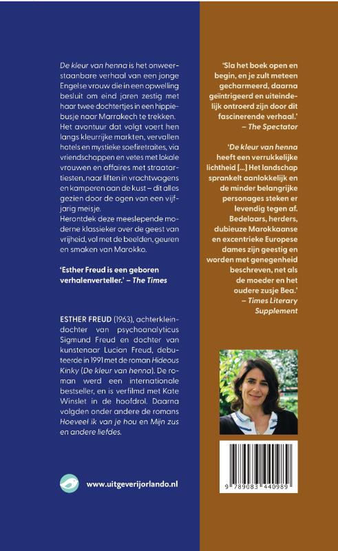 OverzichtDe kleur van henna, succesvol verfilmd als Hideous Kinky, met Kate Winslet in de hoofdrol, is het onweerstaanbare verhaal van een Engelse hippiemoeder die in een opwelling besluit om het grauwe Londen van 1972 te ontvluchten en met haar twee jonge dochters naar Marokko te verhuizen. Het avontuur dat volgt voert hen langs kleurrijke markten, vervallen hotels en mystieke soefi-retraites, via vriendschappen en vetes, affaires met nomadische straatartiesten, urenlang liften langs stoffige wegen en nachtenlang kamperen aan de kust – dit alles gezien door de ogen van een vijfjarig meisje. Herontdek deze meeslepende moderne klassieker over de geest van vrijheid, vol met de beelden, geuren, kleuren en smaken van het Marokko van de twintigste eeuw.