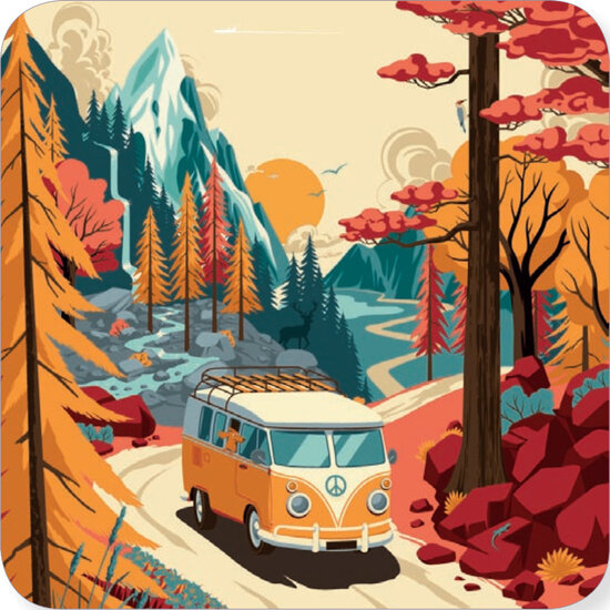 Het busje, RƩmy Tornior, vierkantAnsichtkaart, enkele kaart, postkaart van 14 x 14 cm met envelop van 14,6 x 14,6 cm.