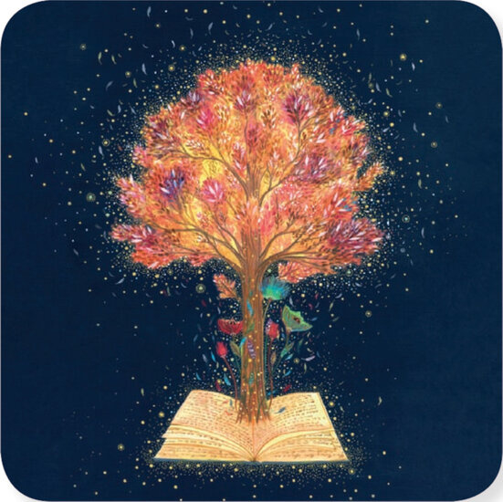 Boom met motten, Jehanne Weyman, vierkantAnsichtkaart, enkele kaart, postkaart van 14 x 14 cm met envelop van 14,6 x 14,6 cm.