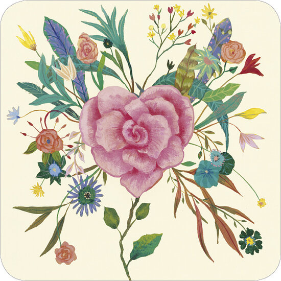 Hart met roos, Izou, vierkantAnsichtkaart, enkele kaart, postkaart van 14 x 14 cm met envelop van 14,6 x 14,6 cm.